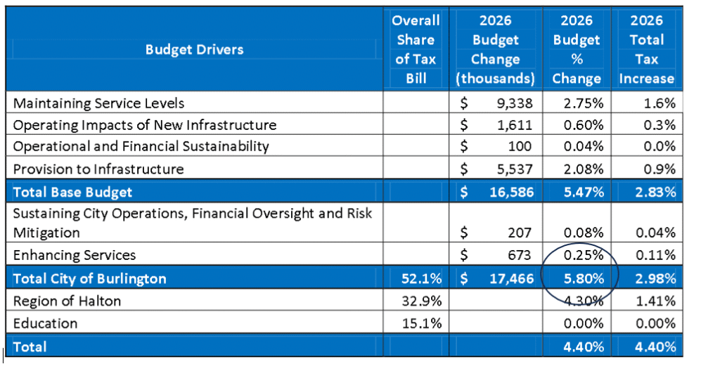 “A 1.75% base funding increase is planned for Local Boards and Partnered Corporations in 2026 (Burlington Public Library, Burlington Museums, Art Gallery of Burlington, The Burlington Performing Arts Centre (BPAC), and Burlington Economic Development and Tourism).”