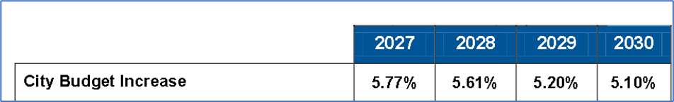The city’s budget increase is circled; the city will spend 5.8% more in 2026 than it did in 2025.