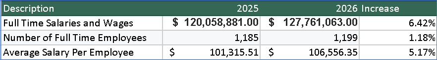 Our calculations show that a 3.3% average salary increase for full-time employees, an increase that is in line with the private sector, would result in a savings of $3,745,837.09 and reduce the projected tax increase from 5.8% to 4.44%.