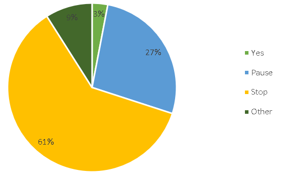 To date, over 60% of respondents voted ‘stop’; over 27% voted for a ‘pause’.