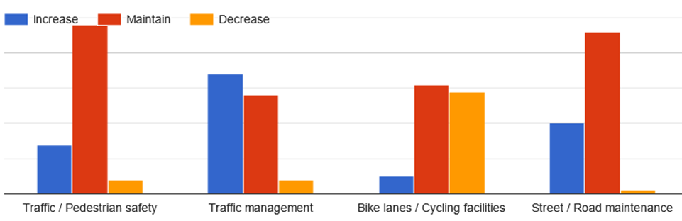 Our survey results, to date, show that traffic management is the only area where the majority of respondents indicate the city should be increasing spending.: