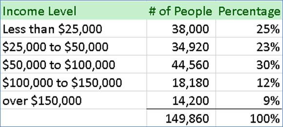 The data also shows us that 32% of Burlington tax filers report pension income and 15% collect means-tested payments for basic needs like food, clothing, and shelter.
